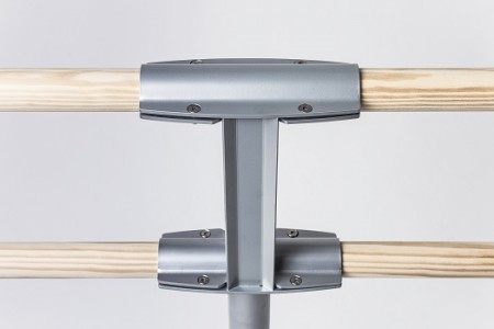 La console PINA-FIX est conçue pour supporter deux barres en bois, à deux hauteurs différentes.